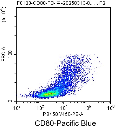 • Staining of splenic lymphocytes from BALB/c mice stimulated with 1μg/mL LPS for 48 hours using APC Anti-CD25 Antibody and PB Anti-CD80/B7-1 Antibody (Clone: 16-10A1) (Cat. No. G0220). Analyzed data are derived from total live cells.