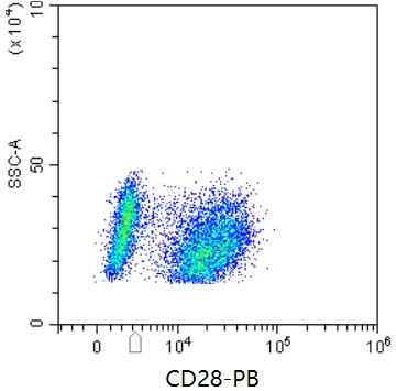 • Staining of normal human peripheral blood mononuclear cells (PBMCs) using PB Anti-Human CD28 Antibody (Clone: CD28.2) (Product No.: H4105). Analyzed data are derived from lymphocytes.