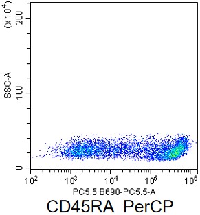 CD45RA是人类白细胞共同抗原的220kDa亚型,在外周血约40-50%的CD4+T细胞、50%的CD8+T细胞以及部分B细胞和单核细胞表面表达。该抗原同时存在于初始T细胞和活化T细胞上,其特异性抗体可用于研究CD4+淋巴细胞中的抑制/诱导细胞亚群。