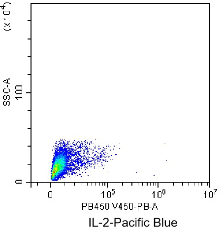 • Staining of fixed/permeabilized HEK-293F cells transfected with pLV3-CMV-IL2(human)-mCherry-Puro plasmid using PB Anti-Human IL-2 Antibody (Clone: MQ1-17H12) (Product No.: H1225). Analyzed data are derived from total cells.
