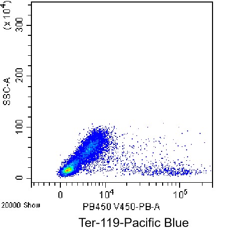 • Staining of unlysed red bone marrow cells from C57BL/6 mice using PB Anti-Mouse Ter-119 Antibody (Clone: TER-119) (Product No.: G4360). Analyzed data are derived from live lymphocytes.