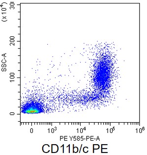 • Staining of bone marrow cells from SD rats using PE Anti-CD11b+CD11c Antibody (Clone: OX42) (Product No.: G2072). Analyzed data are derived from lymphocytes.