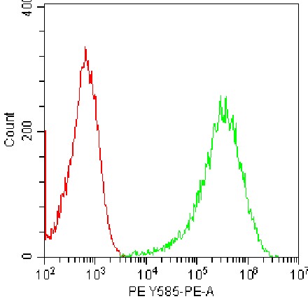 • Staining of bEnd-3 cell line cells using PE CD201/EPCR Antibody (Clone: B2B15) (Selleck CatNo.: G2267) (Green, Red: Blank Control). Analyzed data are derived from total live cells.