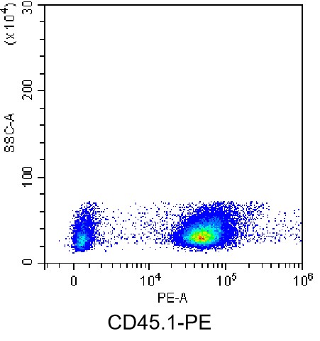 • Staining of splenic lymphocytes from Swiss Jim Lambert mice using PE Anti-CD45.1 Antibody (Clone: A20) (Product No.: G0348). Analyzed data are derived from total live cells.