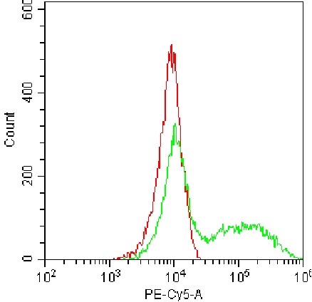 • Staining of permeabilized HEK-293F cells transfected with pCMV-PDGFRB(human)-3×HA-Neo plasmid using fixation/permeabilization buffer with PE-Cy5 anti-human CD140b Antibody (Clone: 18A2) (Product Code: H4058) (green, red is unstained control). Analysis data derived from total cells.