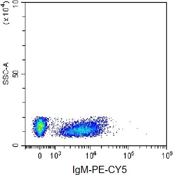 • Staining of splenic lymphocytes from C57BL/6 mice using PE-Cy5 Anti-IgM Antibody (Clone: II/41) (Product No.: G0953). Analyzed data are derived from live lymphocytes.