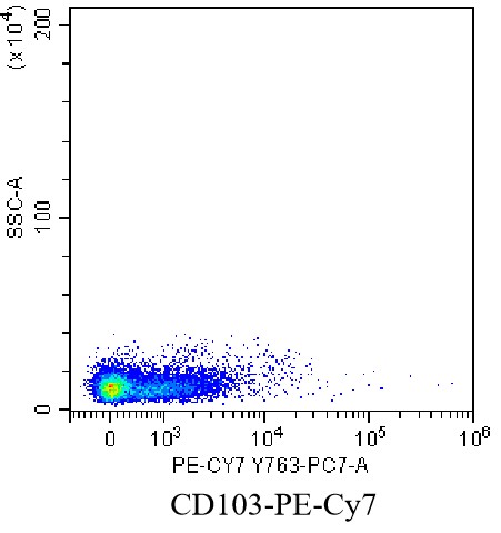 • Staining of lymph node lymphocytes from C57BL/6 mice using PE-CY7 Anti-CD103/Integrin αE Antibody (Clone: 2E7) (Product No.: G0799). Analyzed data are derived from live lymphocytes.