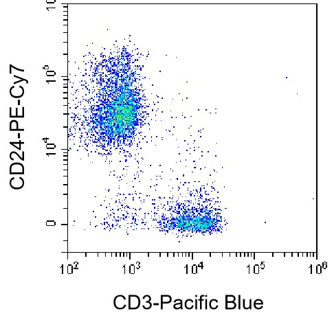 • Staining of splenic lymphocytes from C57BL/6 mice using APC Anti-CD3 Antibody and PE-CY7 Anti-CD24 Antibody (Clone: M1/69) (Cat. No. G0274). Analyzed data are derived from total live cells.