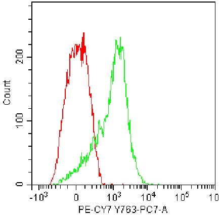 • Staining of splenic lymphocytes from C57BL/6 mice using PE-Cy7 Mouse CD26 Antibody (Clone: H194-112) (Selleck CatNo.: G2869) (Green, Red: Blank Control). Analyzed data are derived from total live cells.