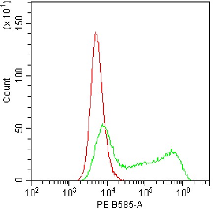 • Staining of permeabilized HEK-293F cells transfected with pCMV-VTCN1(human)-3×Myc-Puro plasmid using fixation/permeabilization buffer with PE anti-human B7-H4 Antibody (Clone: MIH43) (Product Code: H2762) (green, red is unstained control). Analysis data derived from total cells.
