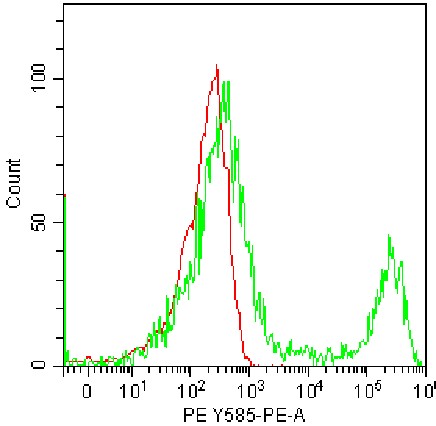 • Staining of U266 cells using PE Human CD138 Antibody (Clone: 44F9) (Product No.: H0812) (Green, Red: Blank Control). Analyzed data are derived from total cells.