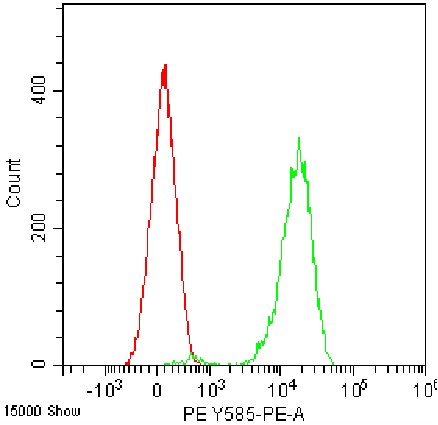 • Staining of MOLT-4 cell line cells using PE Anti-Human CD1a Antibody (Clone: HI149) (Product No.: H1577) (green, red is blank control). Analyzed data are derived from live cells.