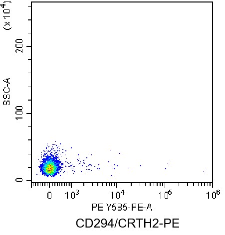 • Staining of normal human peripheral blood mononuclear cells (PBMCs) using FITC Anti-CD4 Antibody and PE Anti-Human CD294/CRTH2 Antibody (Clone: BM16) (Product No.: H1757). Analyzed data are derived from CD4+ cells.