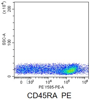 • Staining of normal human peripheral blood mononuclear cells (PBMCs) using PE Anti-Human CD45RA Antibody (Clone: HI100) (Product No.: H0737). Analyzed data are derived from lymphocytes.