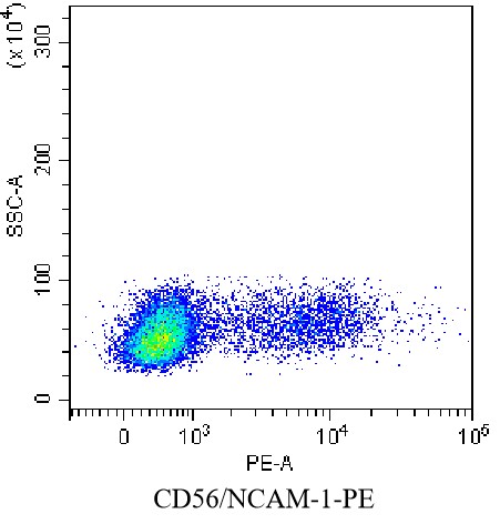 • Staining of normal human peripheral blood mononuclear cells (PBMCs) using PE Anti-Human CD56/NCAM-1 Antibody (Clone: B159) (Product No.: H4262). Analyzed data are derived from lymphocytes.