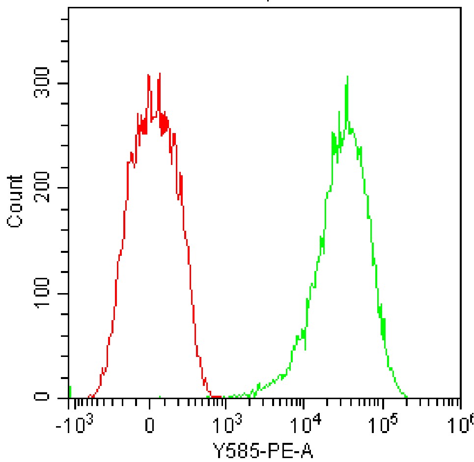 • Staining Raji cells with PE Human CD80 Antibody (Clone: L307.4) (Product Number: H0257) (green, red is unstained control). Analysis was performed on total live cells.