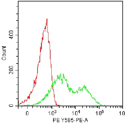 • Staining of fixed/permeabilized HEK-293F cells transfected with human IL-6 plasmid using PE IL-6 Antibody (Clone: MQ2-13A5) (Selleck CatNo.: G1922) (Green, Red: Blank Control). Analyzed data are derived from total cells.
