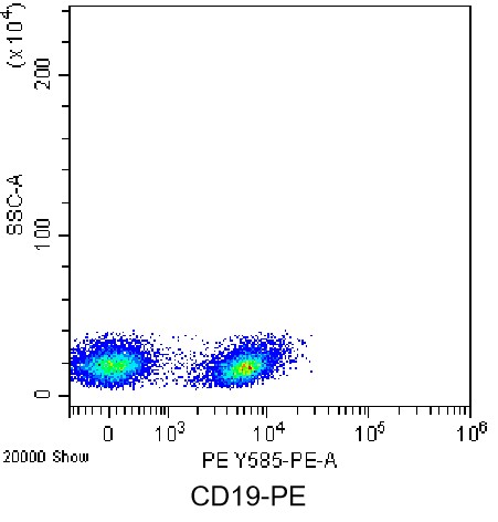 • Staining of splenic lymphocytes from C57BL/6 mice using PE Anti-Mouse CD19 Antibody (Clone: 1D3) (Product No.: G4382). Analyzed data are derived from live lymphocytes.
