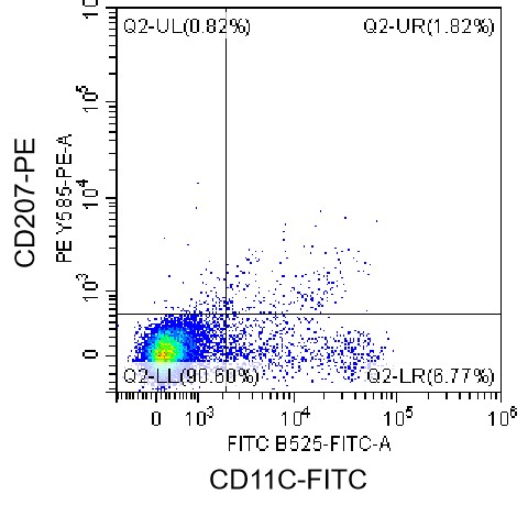 • Staining of splenic lymphocytes from C57BL/6 mice using FITC CD11c Antibody and PE Mouse CD371 Antibody (Clone: 5D3/CLEC12A) (Selleck Cat#: G2012). Analyzed data are derived from total live cells.