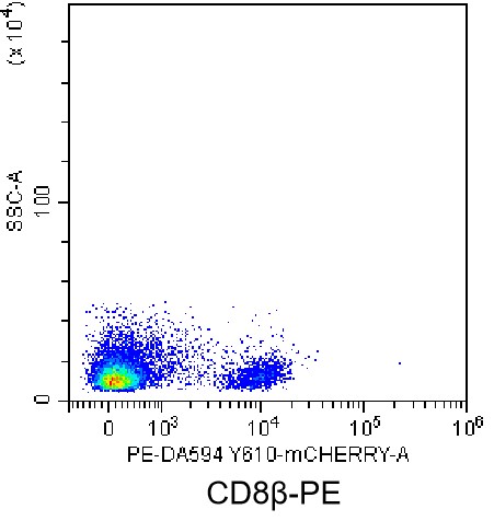 • Staining of C57BL/6 mouse splenic lymphocytes using PE Mouse CD8β Antibody (Clone: 53-5.8) (Catalog Number: G4847). Analysis data derived from live lymphocytes.