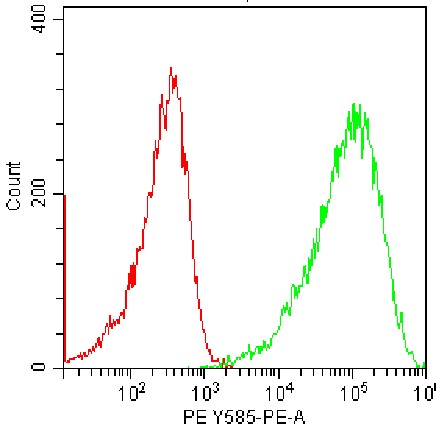 • Staining of CMT-93 cell line cells using PE Mouse TSPAN8 Antibody (Clone: 657909) (Selleck CatNo.: G2597) (Green, Red: Blank Control). Analyzed data are derived from total live cells.