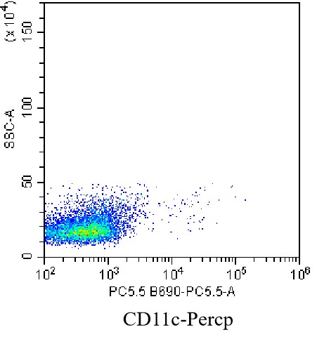 • Staining of splenic lymphocytes from C57BL/6 mice using Percp Anti-CD11c Antibody (Clone: N418) (Product No.: G0101). Analyzed data are derived from total live cells.