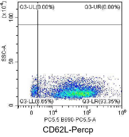 • Staining of splenic lymphocytes from C57BL/6 mice using APC Anti-CD3 Antibody and Percp Anti-CD62L/L-Selectin Antibody (Clone: MEL-14) (Cat. No. G0251). Analyzed data are derived from total live cells.