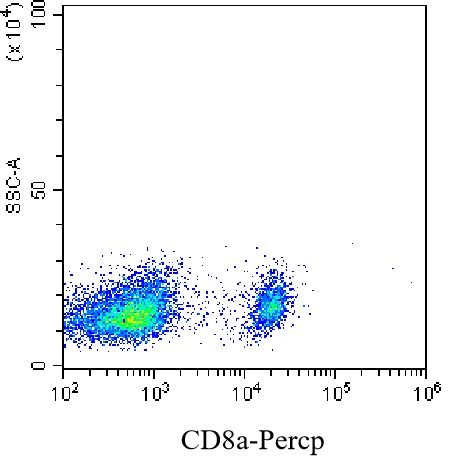 • Staining of splenic lymphocytes from C57BL/6 mice using Percp Anti-CD8a Antibody (Clone: 53-6.7) (Cat. No. G0011). Analyzed data are derived from total live cells.