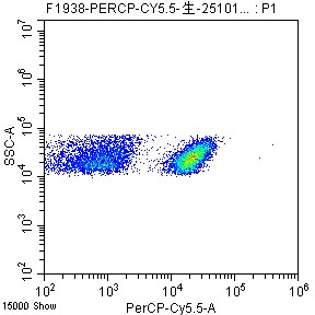 • Staining of platelet-enriched C57BL/6 mouse peripheral blood with PerCP-Cy5.5 anti-mouse/rat CD42d Antibody (Clone: 1C2) (Product Code: G2900). Analysis data derived from platelet cells.