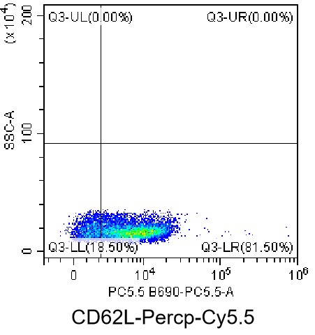 • Staining of splenic lymphocytes from C57BL/6 mice using APC Anti-CD3 Antibody and PerCP-Cy5.5 Anti-CD62L/L-Selectin Antibody (Clone: MEL-14) (Cat. No. G0245). Analyzed data are derived from total live cells.