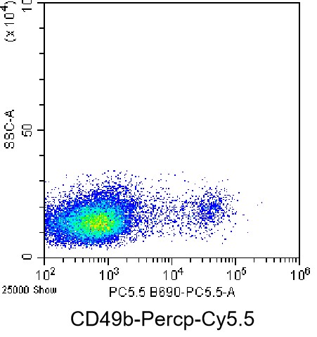• Staining of splenic lymphocytes from C57BL/6 mice using PerCP-Cy5.5 Anti-Mouse CD49b Antibody (Clone: HMα2) (Product No.: G0545). Analyzed data are derived from total cells.