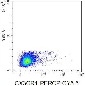 • Staining of splenic lymphocytes from C57BL/6 mice using PerCP-Cy5.5 Anti-Mouse CX3CR1 Antibody (Clone: SA011F11) (Product No.: G1055). Analyzed data are derived from live lymphocytes.