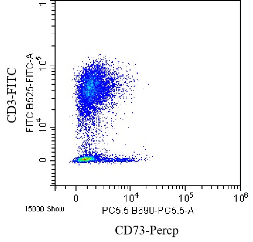 • Staining of normal human peripheral blood mononuclear cells (PBMCs) using FITC Anti-CD3 Antibody and Percp Anti-Human CD73 Antibody (Clone: AD2) (Product No.: H0371). Analyzed data are derived from lymphocytes.