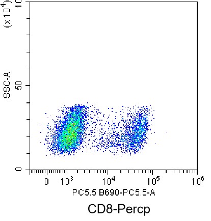 • Staining of normal human peripheral blood mononuclear cells (PBMCs) using Percp Anti-Human CD8 Antibody (Clone: SK1) (Product No.: H0551). Analyzed data are derived from lymphocytes.