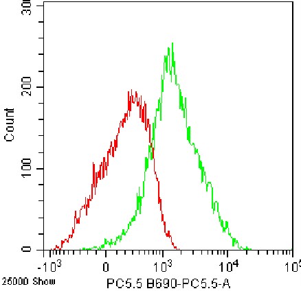 • Staining of normal human peripheral blood mononuclear cells (PBMCs) using PerCP Human CD82 Antibody (Clone: ASL-24) (Selleck Cat#: H3881) (Green, Red: Blank Control). Analyzed data are derived from lymphocytes.