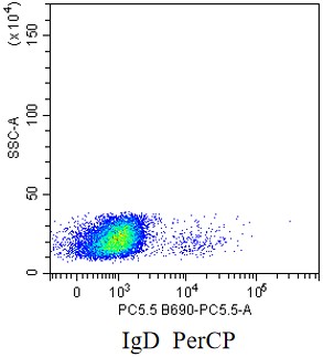 • Staining of normal human peripheral blood mononuclear cells (PBMCs) using Percp Anti-Human IgD Antibody (Clone: IA6-2) (Product No.: H3701). Analyzed data are derived from lymphocytes.