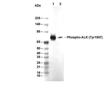 Phospho-ALK (Tyr1507) Antibody [P14J22] 仅识别 Tyr1507 处磷酸化的内源性 ALK 蛋白水平。