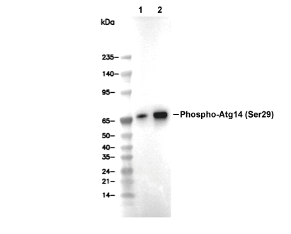 Phospho-Atg14 (Ser29) Antibody [B12C19] 仅识别 Ser29 处磷酸化的内源性 Atg14 蛋白水平。