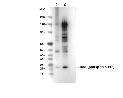 Phospho-Bad (Ser112) Antibody [F3L12] 仅识别 Ser112 处磷酸化的内源性 Bad 蛋白水平。