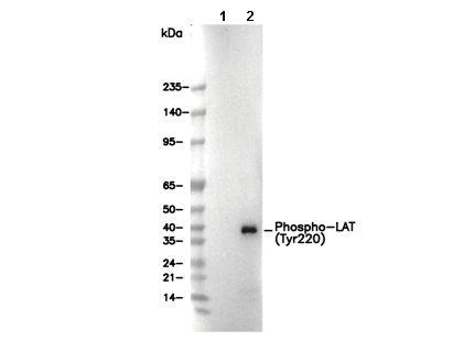 Phospho-LAT (Tyr220) Antibody [L15N18] 仅识别 Tyr220 处磷酸化的内源性 LAT 蛋白水平。