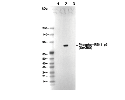 Phospho-RSK1 p90 (Ser380) Antibody [G13M8] 仅识别 Ser380 处磷酸化的内源性 RSK1 p90 蛋白水平。