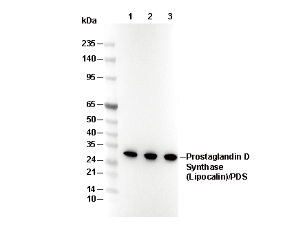 Prostaglandin D Synthase (Lipocalin)/PDS Antibody [A1L2] 可检测内源性 Prostaglandin D Synthase (Lipocalin)/PDS 总蛋白水平。