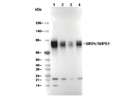 SIRPα/SHPS1 Antibody [E18F24] 可检测内源性 SIRPα/SHPS1 总蛋白水平。