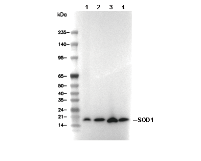 SOD1 Antibody [L21J5] 可检测内源性 SOD1 总蛋白水平。