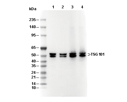 TSG101 Antibody [B19D18] 可识别内源性总 TSG101 蛋白水平。
