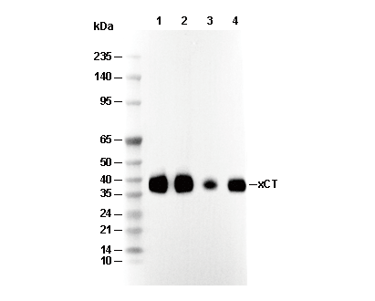 xCT/SLC7A11 Antibody [H13H3] 可识别内源性总 xCT 蛋白水平。