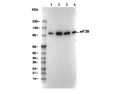 eIF3B Antibody [K11L7] 可识别内源性总 eIF3B 蛋白水平。