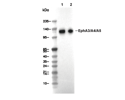 特异性 EphA3/A4/A5 Antibody [A18J10] 可检测内源性 EphA3, EphA4, 和 EphA5 总蛋白水平。