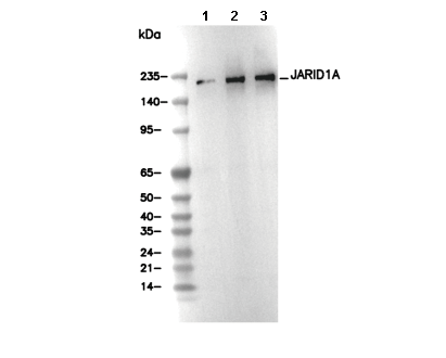 JARID1A Antibody [C3D17] 可检测内源性 JARID1A 总蛋白水平。