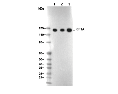 KIF1A Antibody [F10B19] 可检测内源性 KIF1A 总蛋白水平。